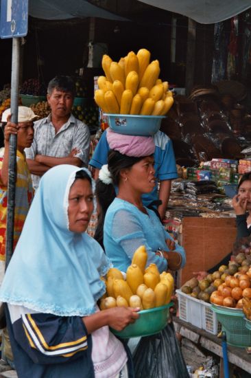 Einfach einen Turban anlegen, dann eine große Schale drauf und ein paar schwere Steine reinlegen.