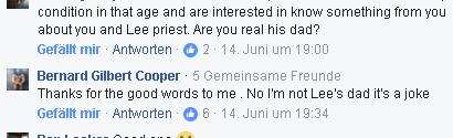 Eingeweihte wissen natürlich, dass Bernie Cooper NICHT der Vater von Lee ist und letzten Endes hat Bernie selbst in den Tiefen von Facebook das Ganze in einem Kommentar als Spaß bezeichnet.
